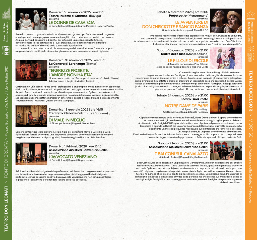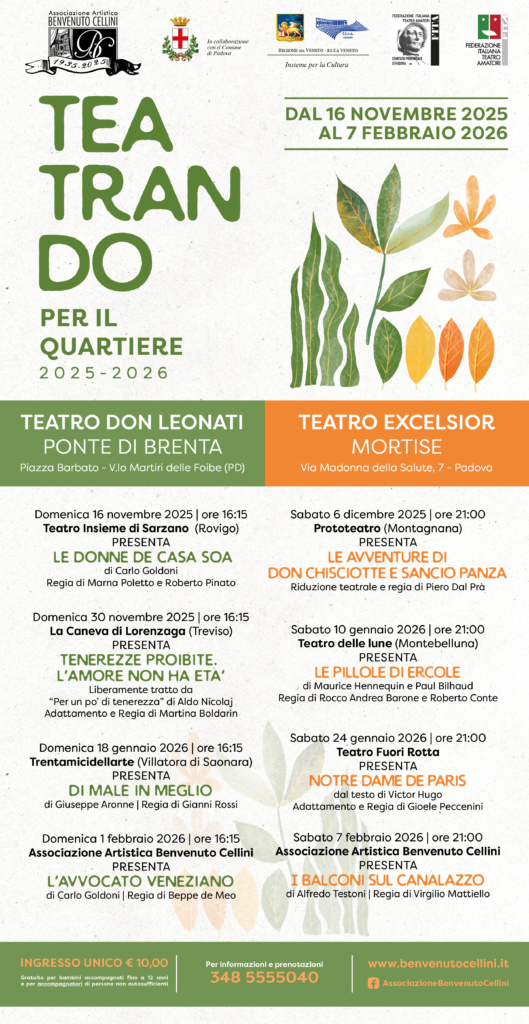 TEATRANDO per il quartiere stagione 2025-2026 PRENOTAZIONI Lunedì al Venerdì: 9:30 – 12:00 e 16:00 – 18:00Sabato: 9:30 -12 Domenica (stesso giorno dello spettacolo): 9:30 – 13 Whatsapp Per la prenotazione di biglietti per i nostri spettacoli teatrali, o degli spettacoli promossi nella nostra rassegna “Teatrando per il Quartiere” potete contattarci telefonicamente o tramite l’apposito pulsante di whatsapp